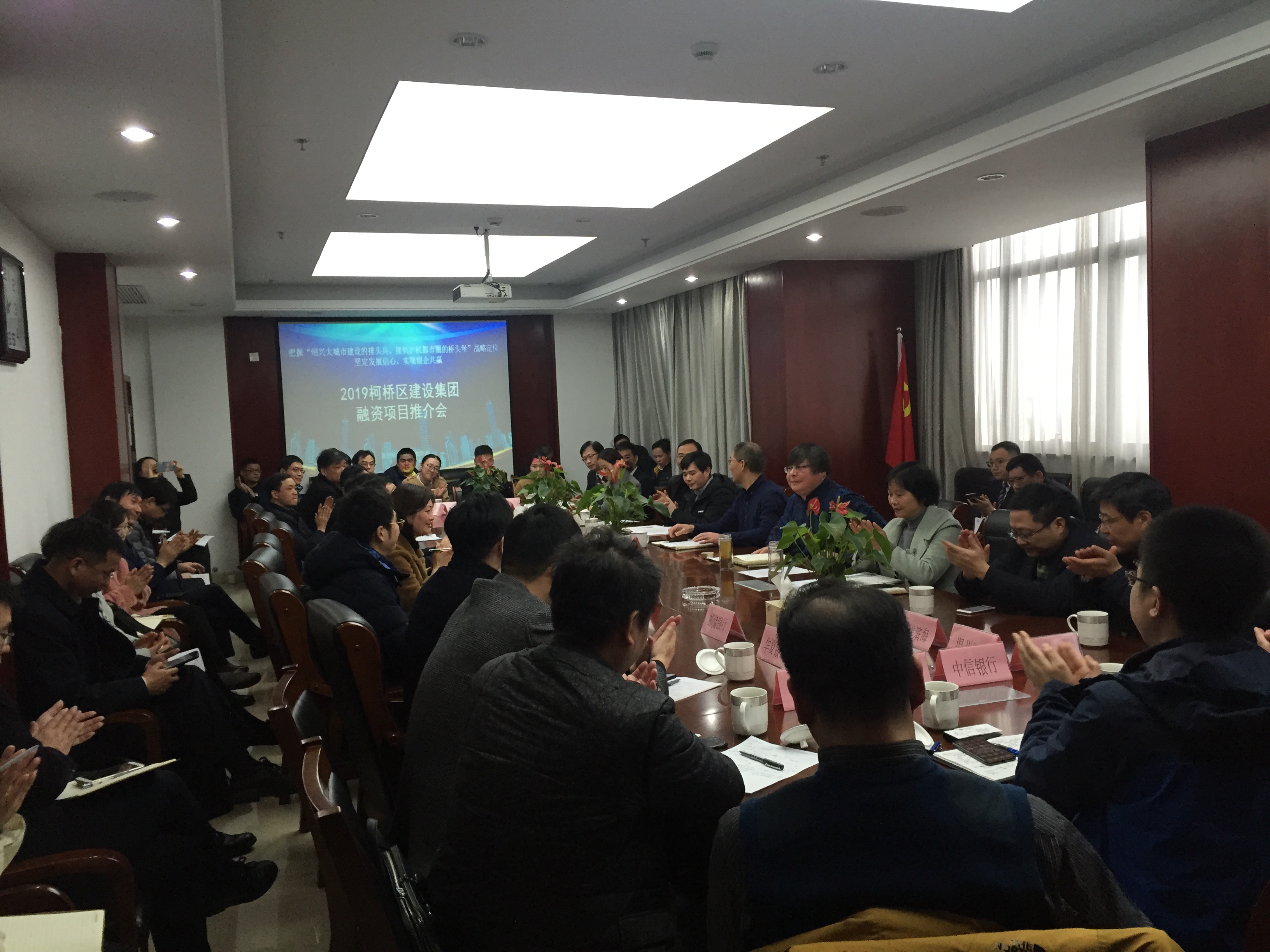 會議首先通報了集團(tuán)2018年融資情況及2019年融資計劃,并對杭金衢高速至杭紹臺高速聯(lián)絡(luò)線、小赭村拆遷項目等9個融資需求項目作了重點(diǎn)推介,推介的項目主要涉及城中村拆遷改造、重大交通項目等方面,總投資達(dá)到256.7億元。隨后,滕董事長向與會人員介紹了2019年重大項目建設(shè)任務(wù)及集團(tuán)轉(zhuǎn)型發(fā)展經(jīng)營性項目投資計劃,同時希望各家金融機(jī)構(gòu)繼續(xù)在信貸政策、擔(dān)保授信、融資方式等方面給予支持。最后,各家銀行代表做了積極交流發(fā)言,就努力發(fā)揮自身優(yōu)勢、加快項目合作對接、加強(qiáng)金融改革創(chuàng)新等方面提出建議意見。