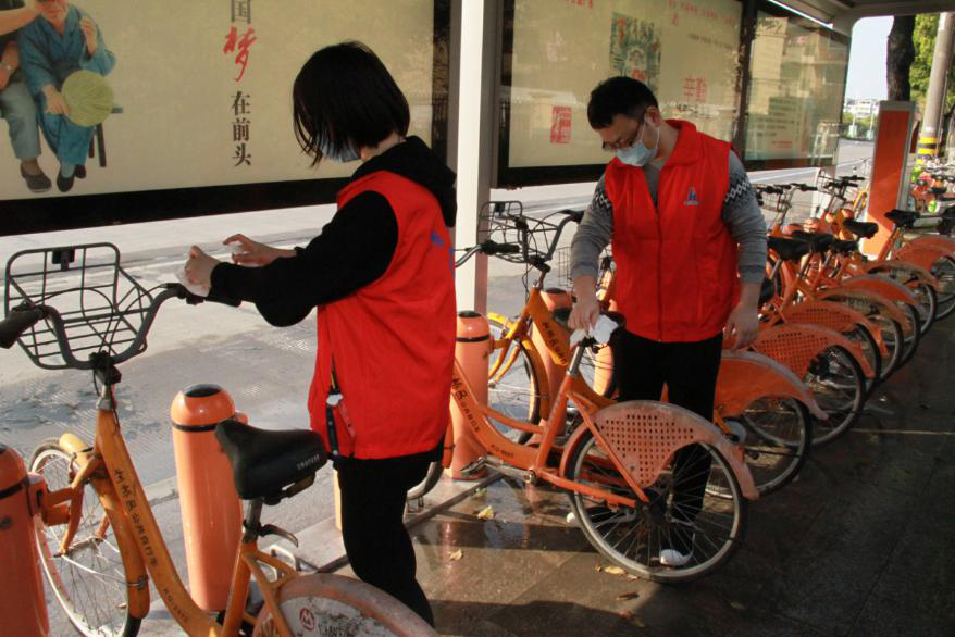 疫情當(dāng)下,使命當(dāng)頭,集團(tuán)青年志愿者們身著紅背心,沿著紹大線一路前行,向道路周邊小區(qū)和沿線商鋪居民發(fā)放公益?zhèn)鲉魏鸵淮涡跃凭奁蚓用窨破湛箵粢咔橄嚓P(guān)知識,提醒居民加強(qiáng)自我防范意識,減少外出活動,樹立戰(zhàn)疫信心。同時志愿者們還對紹大線沿線公交車站和公共自行車停放點等人流量較大的公共區(qū)域進(jìn)行酒精噴灑和消毒棉片擦拭,減少病菌的傳播擴(kuò)散。遇到有不佩戴口罩或佩戴口罩不規(guī)范的居民,志愿者們耐心地加以勸導(dǎo),并示范口罩正確佩戴方式。
