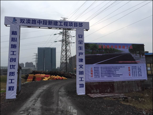 2017年11月16日下午,位于紹興市柯橋區迎福安置小區附近的雙瀆路中段道路新建工程進行了首個橋臺樁基試樁,這標志著本工程的正式開工。工程為南北走向,施工起點與錢陶公路道路中點接順,終點與迎福小區東入口道路接順。本工程施工總長度344.5米,其中有一段5*20米的簡支梁板橋,梁底控制標高7.63米,道路總寬度32米,設有雙向四車道及非機動車道和人行道,為城市次干路。